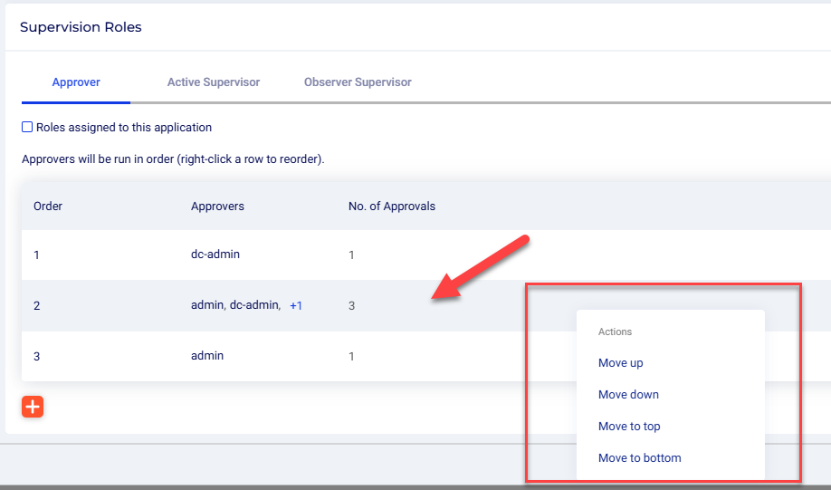To create a sequence of Approvers, click + under Approver in the Supervision Roles section and add Approvers.