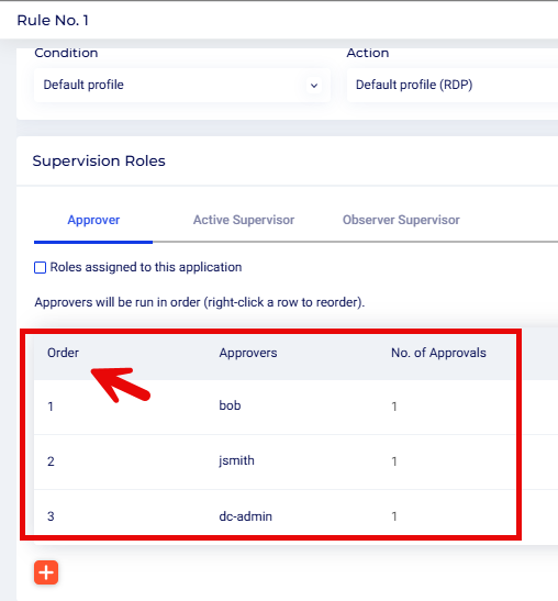 - The first Approver entry has 3 associated identities, and since the Number of Required Approvals is set to 3, all 3 must approve before Cyolo sends the request to the next identity.