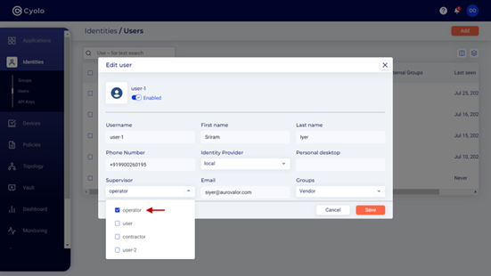 - In the Supervisor field, select the user you want to assign as the supervisor for this user.