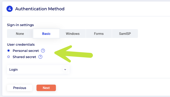 - Under the application's SSO settings, select the Personal Secret option.