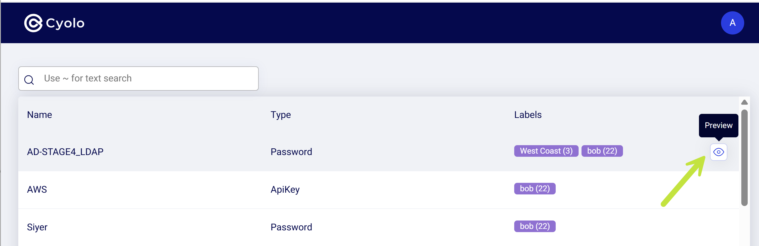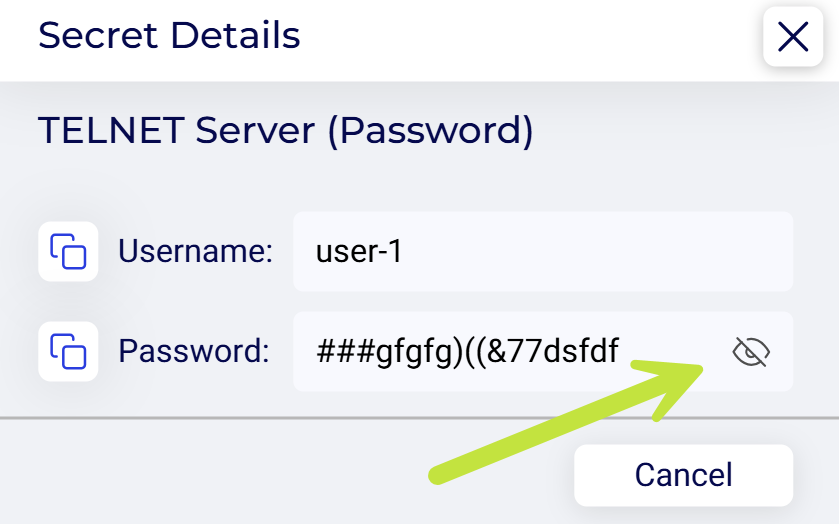- Click the Preview icon at the far right of the secret row.